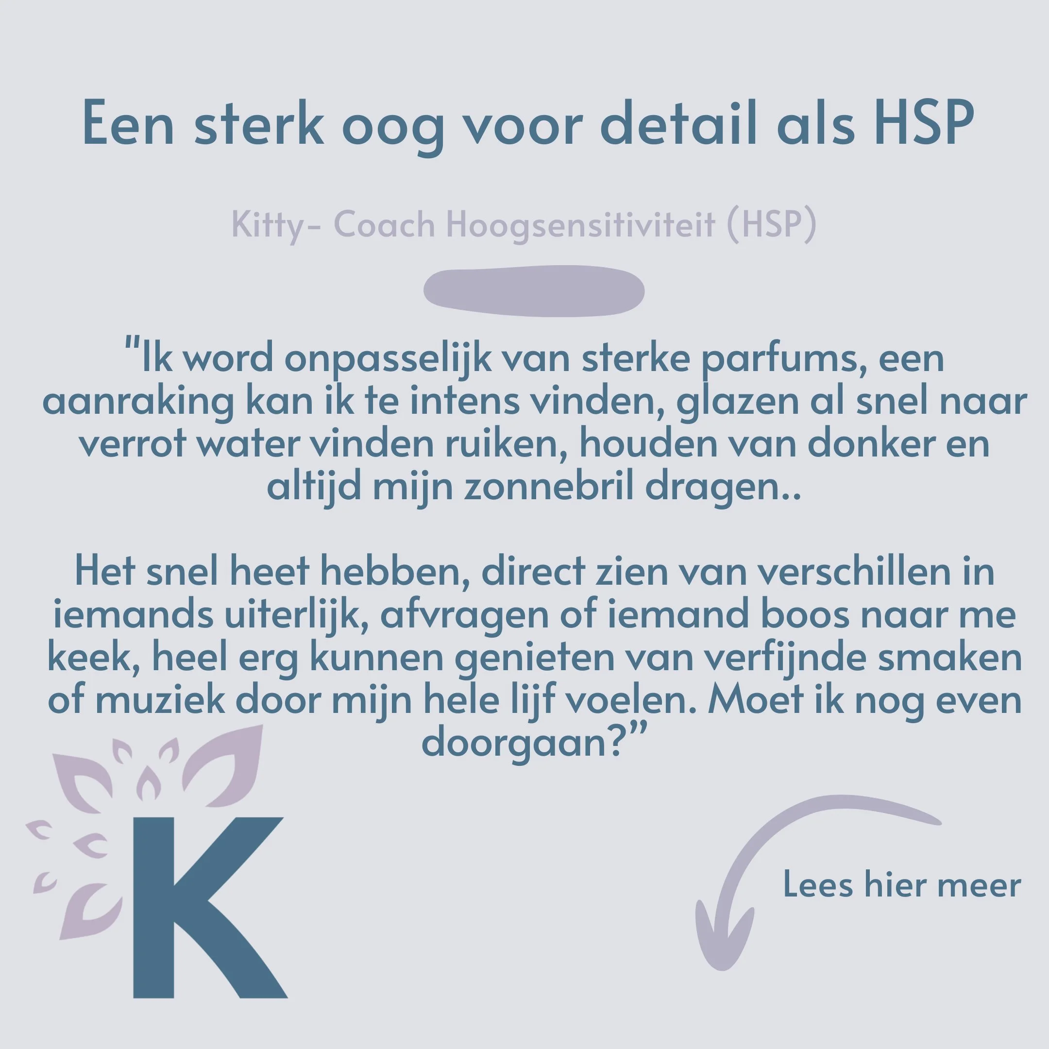 Maar het sterke oog voor detail ofwel de verhoogde opmerkzaamheid die HSP bezitten is méér dan dat en dat leg ik hier graag uit: 🔎